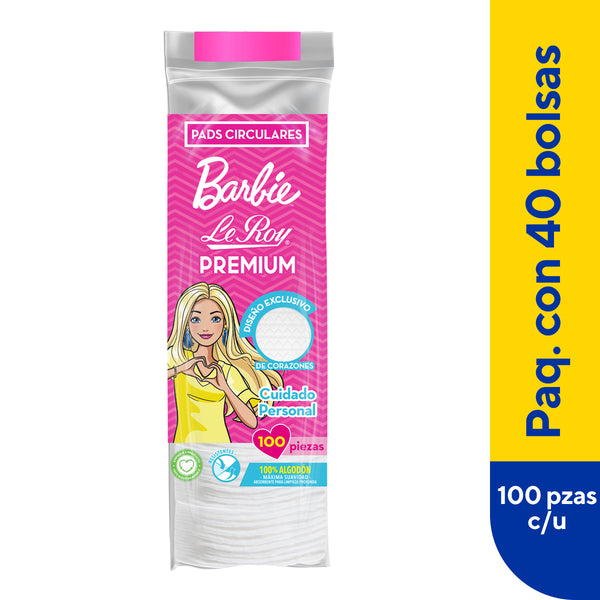 Descripción Barbie Pads 100 % Algodón. Máxima suavidad y absorción, cosméticos, limpieza personal, bebés.